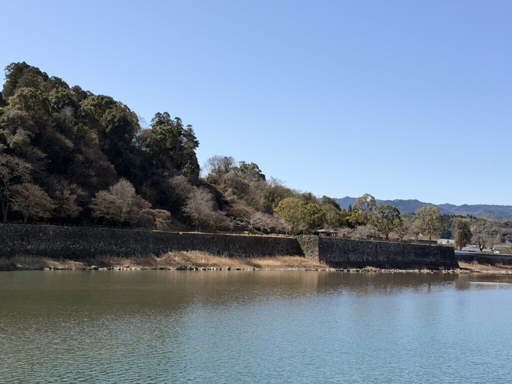 球磨川を挟んで、対岸は人吉城の石垣です